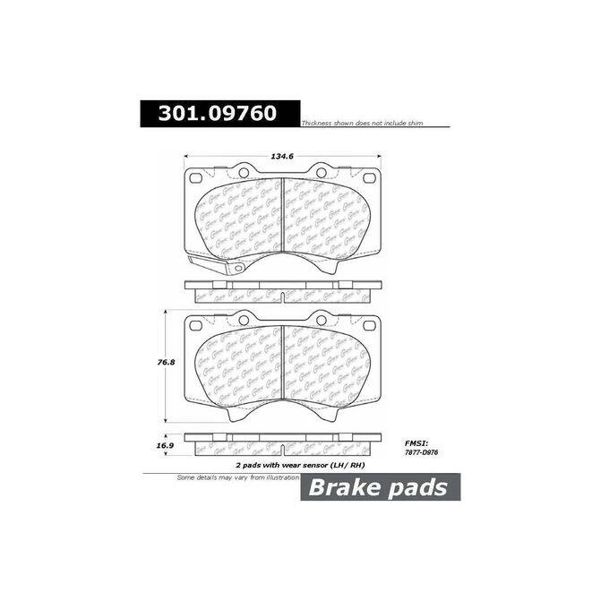 Centric Parts Premium Brake Pads provide superior stopping power and reliability for passenger cars and light duty trucks. Centric Parts engineers have worked with leading brake pad manufacturers to develop two application specific friction compounds that - 100% Asbestos free formulas; Positive mold technology. High performance shims installed. Excellent stopping power when hot or cold. Increased brake pad service life; Low dust formulations keep wheels cleaner.