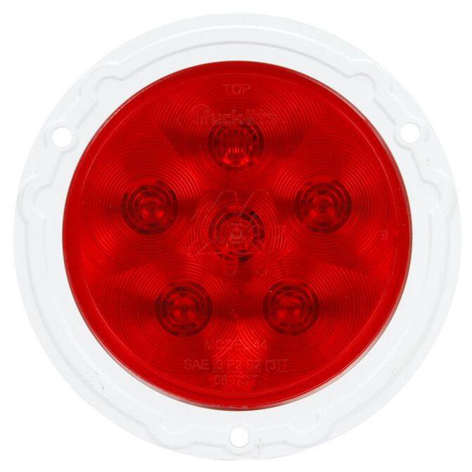 • Stop/Turn/Tail - Super 44, Led, Red, Round, 6 Diode, Stop/Turn/Tail, White Flange Mount, Diamond Shell, Fit 'N Forget S.S., 12V