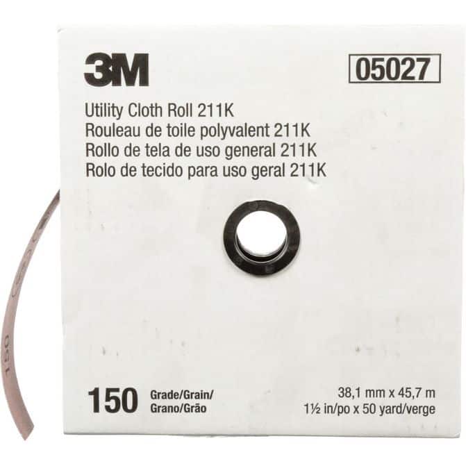 • The 3M 1-1/2" x 50 yd 150 Grit Aluminum Oxide Very Fine Cloth Utility Roll features durable aluminum oxide abrasive for dependable cutting performance and long service life. The very fine 150 grit is ideal for smooth surface finishing and light material removal. Constructed with a cloth backing, the roll provides flexibility and strength for effective sanding on various contours. Its utility roll format allows the material to be cut to the desired length, reducing waste. This roll is suitable for fine sanding, surface preparation, and finishing tasks, delivering consistent and uniform results across work surfaces.