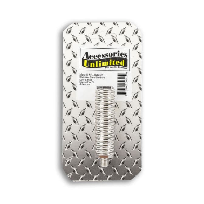 Get your semi truck Ready for the Road Ahead™ with a reliable CB for both daily and emergency use, with the Accessories Unlimited 3" Medium Duty Stainless Steel Spring. By tightly securing your antenna to its mount, this easy-to-install replacement spring is the ideal option to keep your antenna in place during powerful winds or weather conditions. Manufactured with quality components to provide an extended range and clear connection to countless AM/FM stations, channels, and frequencies.