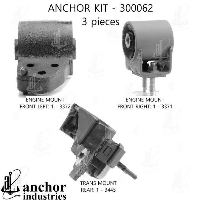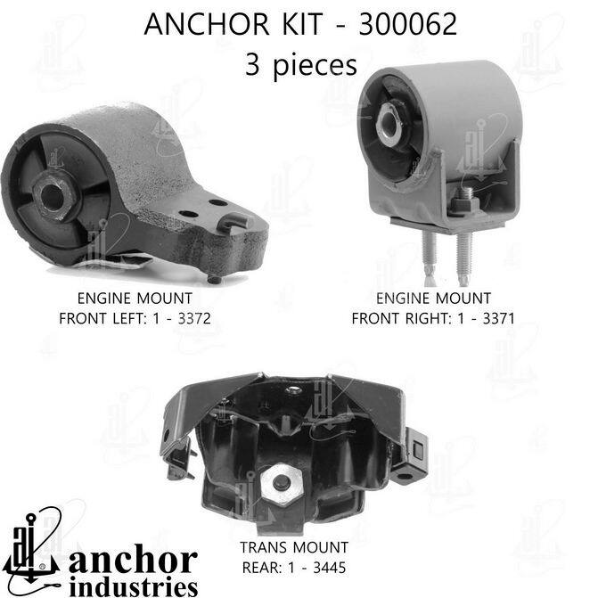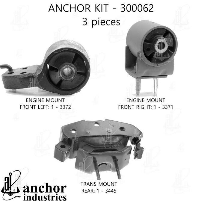 Maximize your fleet's uptime and minimize costly repairs with the ANCHOR 300062~AM Engine Mount Kit. Engine mounts are critical components that absorb vibration and maintain engine alignment. A failing engine mount can lead to increased vibration, noise, and even damage to other engine components. Replacing a worn mount proactively prevents these issues. The ANCHOR 300062~AM kit offers a superior solution, providing OEM-quality performance at a competitive price. Manufactured by Anchor Industries, a trusted name in the automotive industry since 1933, this kit features: Precision engineering for a perfect fit. High-quality materials for superior durability and longevity. Hardened steel fasteners with heat-treated Grade #5 bolts for enhanced security. Natural and SBR rubber compounds for maximum life and performance. This kit ensures your fleet vehicles operate smoothly and efficiently, maximizing productivity and minimizing maintenance expenses. Don't compromise on quality or performance. Choose ANCHOR 300062~AM and experience the difference. Invest in reliable performance and reduce downtime, maximizing your fleet's operational efficiency.
