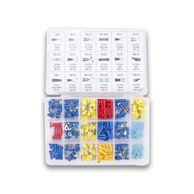 The Medco 360 Piece Terminal Assortment is the perfect solution for all your electrical connection needs. This comprehensive set includes ring terminals, butt connectors, spade terminals, bullet terminals and other types of connectors. All of these components are conveniently stored in a molded storage case for easy access and organization. This assortment is ideal for automotive and other electrical applications, allowing you to quickly and easily connect wires and cables. With this terminal, you can be sure that your electrical connections are secure and reliable. FleetPride is your First Click in Heavy Duty®. - Includes ring terminals, butt connectors, spade terminals, bullet terminals, and other types of connectors