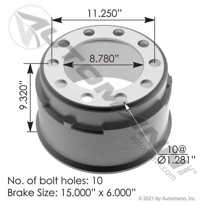 The Automann 15" x 6" Brake Drum is a top-of-the-line product designed to provide exceptional stopping power for your vehicle. Made from high-quality cast iron material, this brake drum is built to last and withstand the toughest driving conditions. The O.E. style painted finish ensures protection from the elements, making it a reliable choice for any weather condition. This brake drum is designed to reduce brake noise compared to lightweight steel shell composite brake drums, ensuring a smooth and quiet ride. The production processes used in the manufacturing of this product guarantee proper fitment and superior performance and quality. This brake drum is compatible with a wide range of vehicles. It is an ideal replacement for worn-out or damaged brake drums, providing excellent stopping power and ensuring your safety on the road. Invest in the Automann 15" x 6" Brake Drum for a reliable and high-performance braking system that will keep you safe on the road.