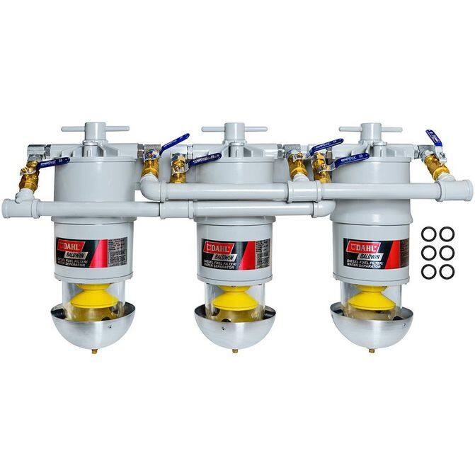 • Fuel Water Separator Filter; Three Marine Diesel Fuel Filter/Water Separators Manifolded with Shut-Off Valves