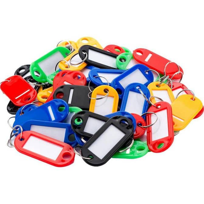 Manufacturer Part Number: AF12496|Type|Key TagNumber of Keys|0Material|PlasticColor|Red; Blue; Black; Green; OrangeOpens With|KeyHeight (Inch)|2Key Tag Hanging Style|HookWidth (Inch)|1Overall Depth|0.1875Combination Style|Finish|Maximum Number Of Keys Per Position|For Maximum Key Length|Mounting Location|Key Tags Included|Mounting Hardware Included|Includes|PSC Code|UNSPSC Code|46171500