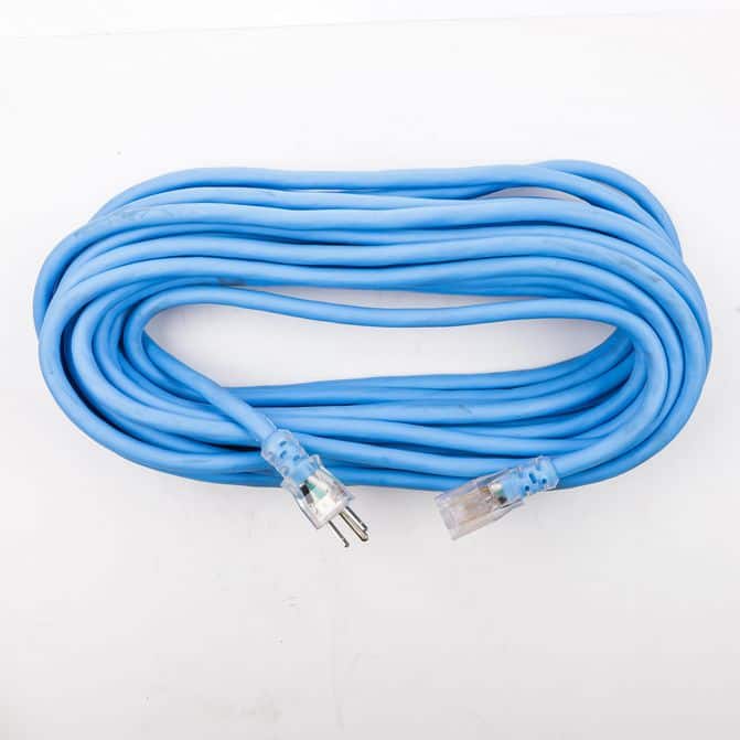 • The Bayco 50' 15A Cold Weather Extension Cord with Single Lighted Outlet is the perfect solution for outdoor projects in cold weather. This cord is made with a 12/3 gauge and a SJEOW cord jacket that is flexible in cold weather-rated clothing. It also offers an improved level of oil and water resistance. This cord comes with a single male plug and a single female outlet and is UL Listed for safety. The blue color makes it easy to spot in any environment. With its 50' length, this cord is perfect for any outdoor project.