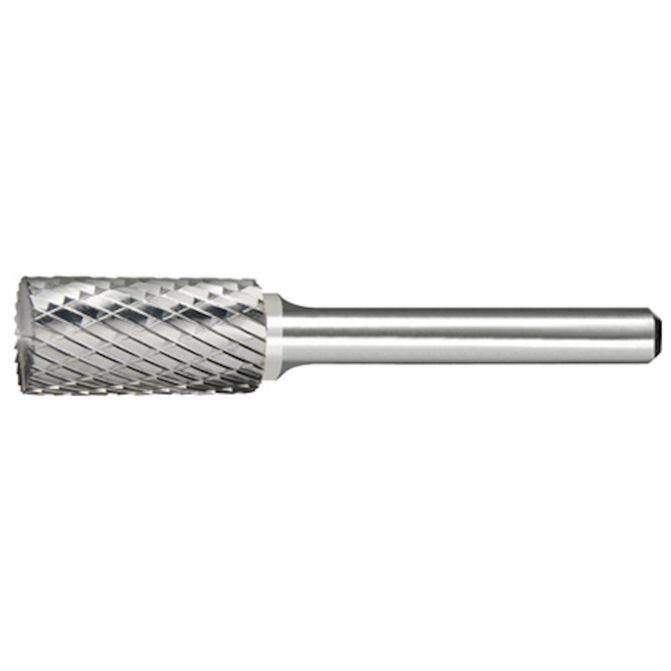• Carbide Burr, SB-6 Cylindrical End Cut, 5/8" Head Diameter x 1" Head Length, Double Cut, 1/4" Shank, Right Hand Cut, Made in USA