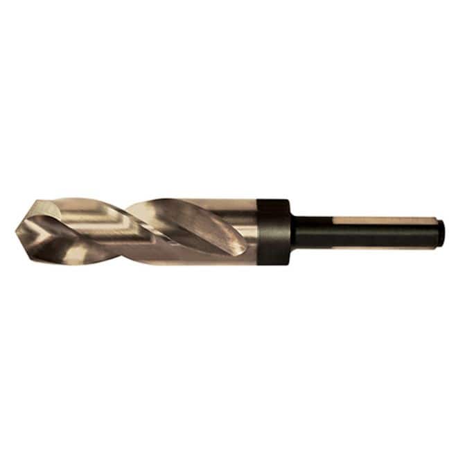 • Alfa USA Cobalt Silver & Deming Drill Bit, 41/64" Diameter, 0.6406 Decimal Equivalent, 3-1/8" Flute Length, 6" Overall Length, M42 High Speed Steel, Straw Gold Finish, 118° Point, 1/2 Reduced Shank, 3 Flats, Heavy Duty, Right Hand Spiral, Made in USA