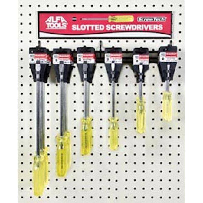 • ScrewTech™ Screwdriver 18 Piece Phillips & Slotted Display, Contains 3 of Each #1 Tips Size x 6-1/8" Overall Length, #2 x 7-1/2", #3 x 10", #4 x 12-5/16", Ergonomic Crystal Gold Plastic Grip, Chrome Vanadium Blade, Black oxide Tip, Made in USA