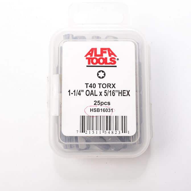 Screwdriver Insert Bit, T40 Torx x 1-1/4" Overall Length x 5/16" Hex Shank, - High performance drills for production as well as tough maintenance applications