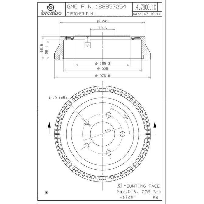 Part #: 14790010|Brand: BREMBO|MPN #: 14.7900.10~BR