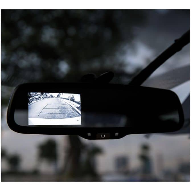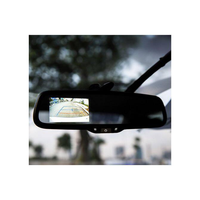 • Adds a backup camera feed to your rearview mirror