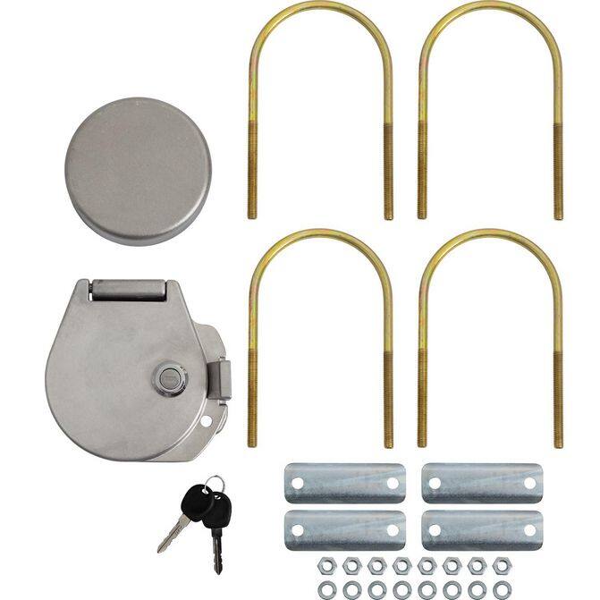 • Kit includes key-locking cast aluminum door and end cap, drill-free zinc-plated mounting plates, and hardware