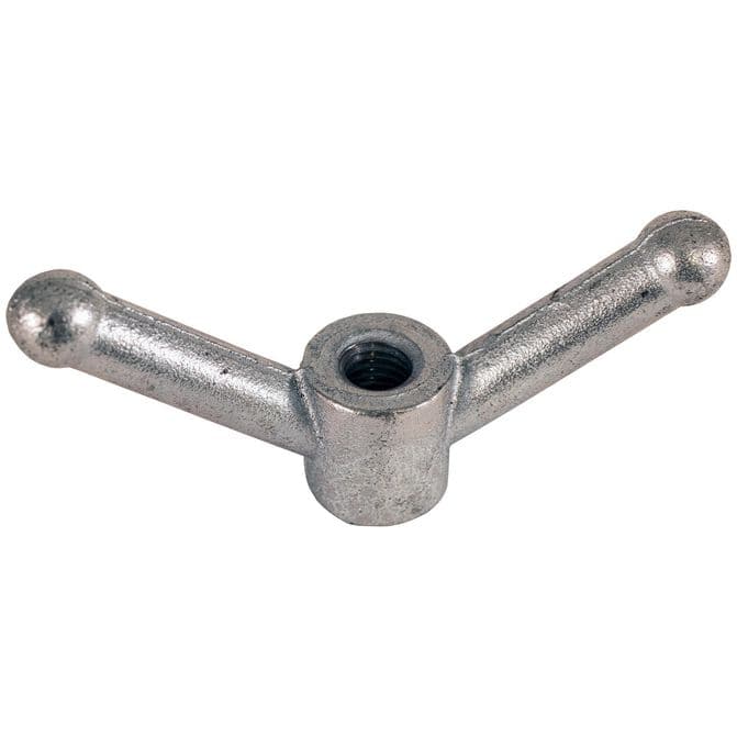 • Buyers Products Cast Iron Wing Style Clamp Handle is ideal for securing doors, chutes, and tailgates using a 5/8-11 rod. The handle is zinc plated for corrosion resistance.