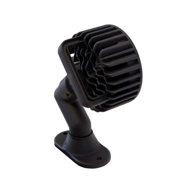 • Buyers Products Ultra Bright 5 Inch LED Articulating Flood Light's outputs 4500 lumens of light across a broad area. It easily mounts to any flat surface, and the dual swivels at the base and light head help it get in the right position to get the job done. The unit has durable e-coated aluminum housing that resists corrosion and facilitates heat dissipation. It's finished with a black powder coat for extra protection and style. It comes with a built-in on/off switch and 36 in. prewired leads with blunt cut ends for easy installation and operation. The light is IP67 rated for water and dust resistance. Each light is backed by a 5 year warranty.