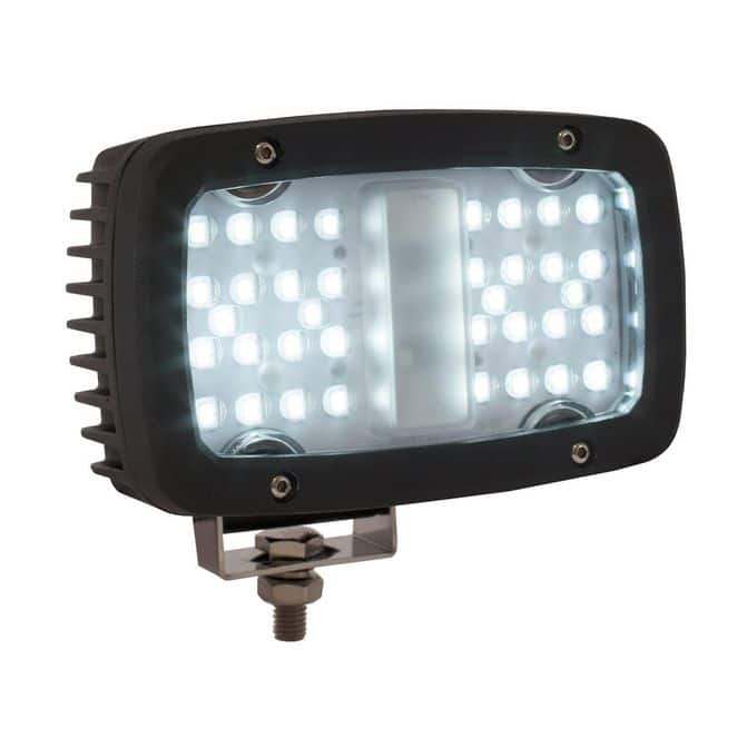• Buyers Products Ultra Bright 6.5 Inch Wide Rectangular LED Flood Light features new HLD (High Lumen Density) optics that blasts 7920 lumens of light across a wide area. The durable light features black powder-coated aluminum housing for optimal heat dissipation. It is rated IP68/IP69K for extreme dust and water resistance. This design makes the light perfect for both on-road and off-road applications. The light has a blunt cut 11 inch wire lead with a simple-to-install stud mount. It's backed with a 5 year warranty.