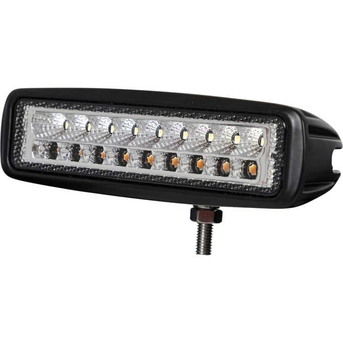 Buyers Products 6.5 Inch Wide LED Flood Light with Strobe is two lights in one. Shine up to 1710 lumens of light across a wide area with its powerful white flood light, then swap to the bright amber strobe when you need a warning light. The single-stud mounting bracket makes it easy to position the light for your needs.