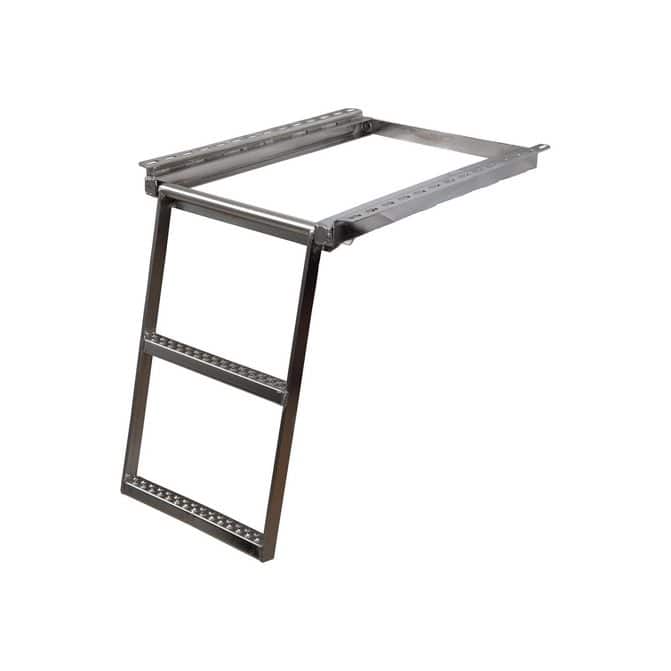 • Buyers Products Retractable Truck Step adds additional steps to your vehicle and stores away when not in use. Steps store horizontally to avoid interference with truck boxes, reservoirs, and more, and protects steps from damage while not in use. Available with two or three rungs, each step has non-slip treads and a structural steel frame. Steps can be bolted or welded on and are available in stainless steel or a black powder coat.