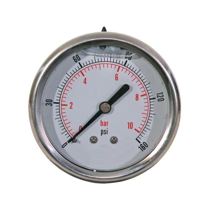 Silicone Filled Pressure Gauge - Center Back Mount 0-160 PSI