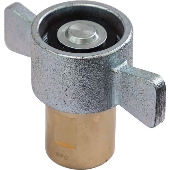 • Buyers Products Wing-Type Hydraulic Quick Couplers attach and detach with a simple twist. The couplers are made of solid brass. Order them separately or as a complete coupler with a ductile iron wing section. iNote on part number sequence: QDWC## is the set. QDWC##1 is the male end only. QDWC##2 is the female end only/i
