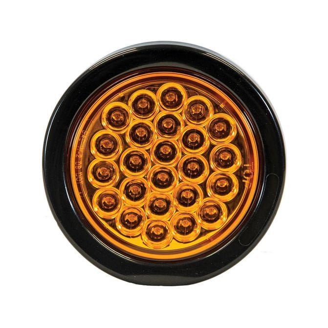• Buyers Products 4 Inch Round LED Recessed Strobe Light has 24 LEDs and is SAE J595 Class 2 rated. It features 12-24V power range and has an impact-resistant plastic housing. A grommet and PL-3 plug are included for installation. The light is available with a six-flash or quad flash strobe pattern. The quad flash strobe also has alternating and synchronous functions. Lights are rated IP67 for water and dust resistance and are backed with a 5 year warranty.
