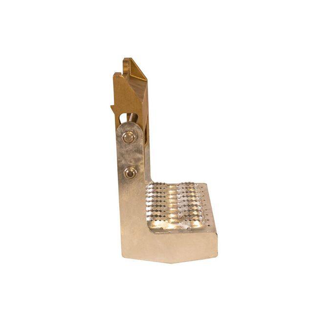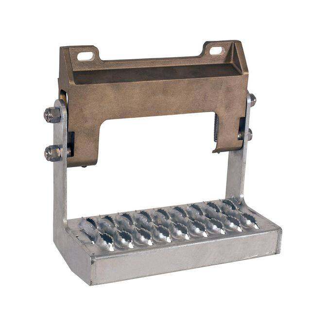 • Buyers Products Breakaway Truck Step mounts to a step bumper and is designed to pivot forward or backwards to prevent damage if impacted. The step folds up for transport, which is handy with low bumpers where ground clearance is tight. The breakaway step is constructed with a cast brass mounting bracket and stainless steel pivot shafts, springs, and fasteners for easy assembly and long lasting use. Galvanized steel grips provide extra traction for slip protection.