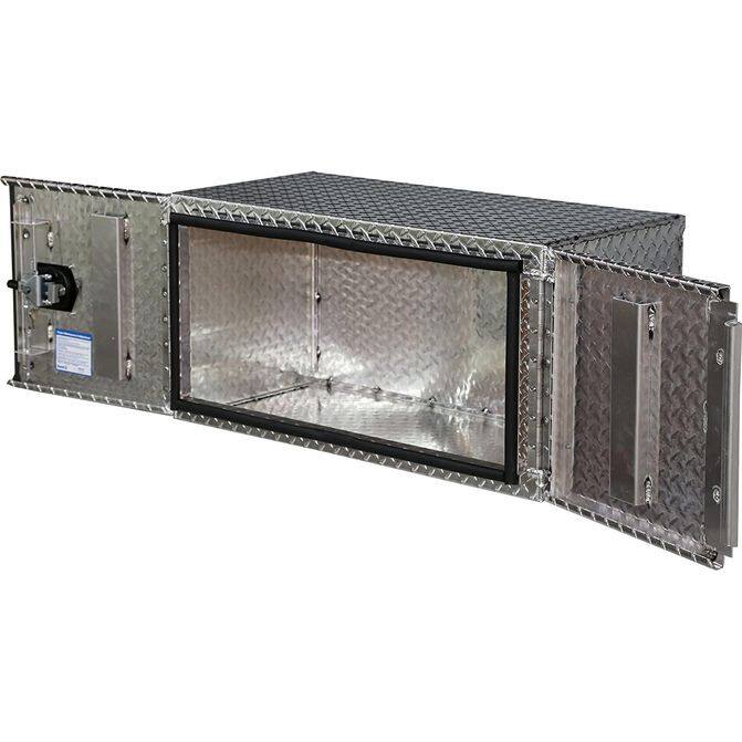 • Outfit your semi truck to be Ready for the Road Ahead™ with increased storage space, with the Buyers 24" x 24" x 48" Diamond Tread Aluminum Underbody Truck Box. Thanks to its secure design, this replacement box is able to offer an additional space to store tools, equipment, backup materials, and important items. Crafted with a weather-resistant and durable body to tolerate extreme conditions. FleetPride is your First Click in Heavy Duty®.