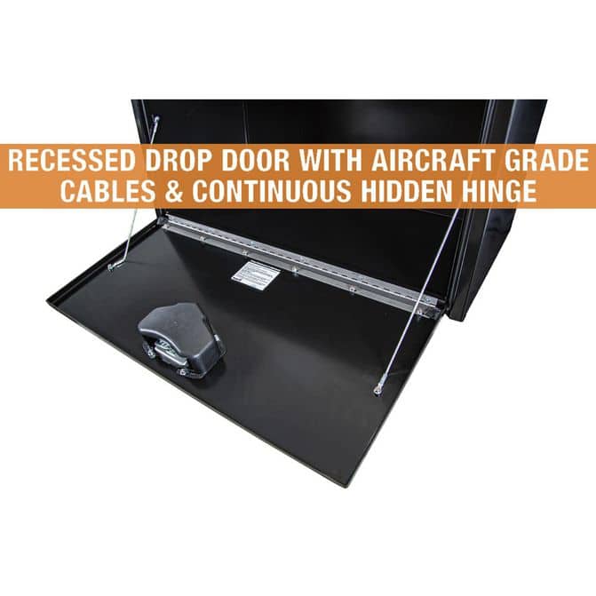 - Drop Door18.00 inD-Bulb Seal Gasket, Lock Included36.00 in18.00 inT-Handle1Powder Coated Underbody Truck Box014010001