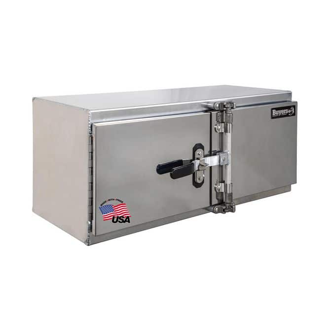 Secure and protect tools and equipment on your flatbed, platform, step-deck, or dump body with the Buyers Products Smooth Aluminum Barn Door Underbody Truck Toolbox with Cam Lock Rod. Each heavy-duty truck toolbox is built from extra-thick 0.125-inch-thick smooth aluminum.