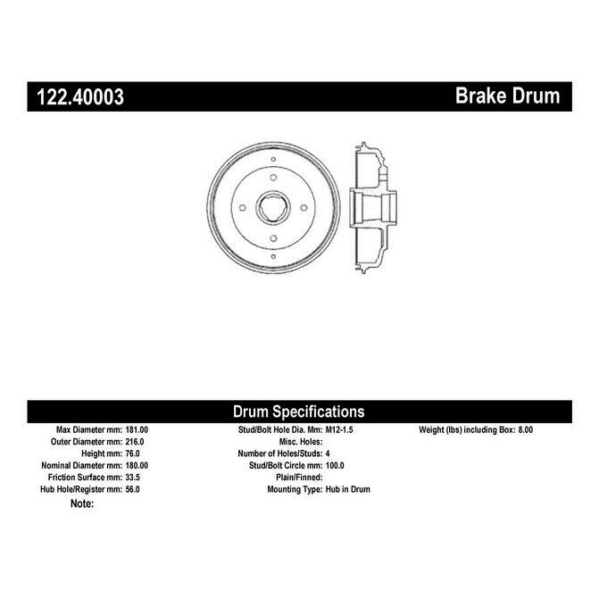 • Centric Premium brake drums feature Original Equipment specifications and production processes guaranteeing proper fitment and superior performance and quality. Centric premium drums utilize either an Electrocoating finish or O.E. style painted finish for