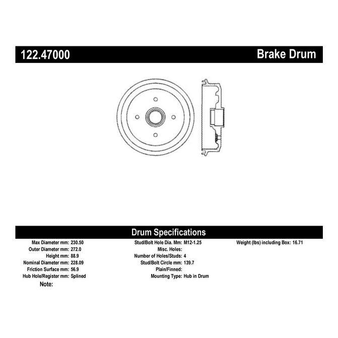• Centric Premium brake drums feature Original Equipment specifications and production processes guaranteeing proper fitment and superior performance and quality. Centric premium drums utilize either an Electrocoating finish or O.E. style painted finish for
