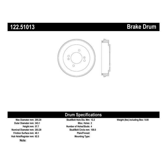 • Centric Premium brake drums feature Original Equipment specifications and production processes guaranteeing proper fitment and superior performance and quality. Centric premium drums utilize either an Electrocoating finish or O.E. style painted finish for