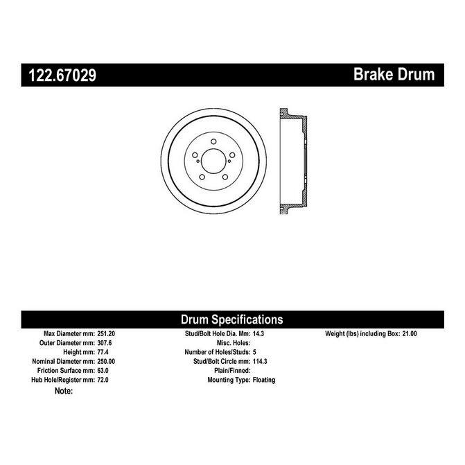 • Centric Premium brake drums feature Original Equipment specifications and production processes guaranteeing proper fitment and superior performance and quality. Centric premium drums utilize either an Electrocoating finish or O.E. style painted finish for