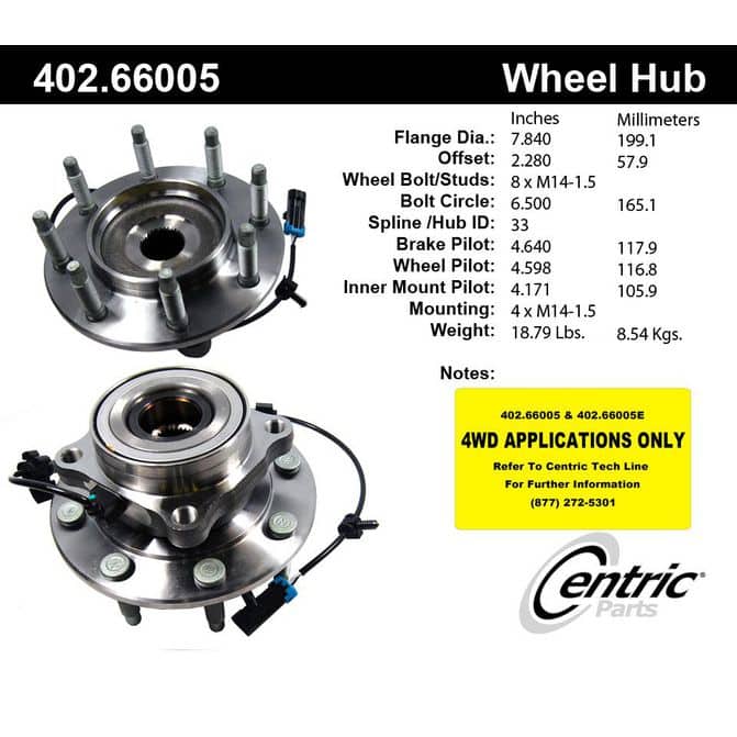 Centric Premium Driven Hubs (With Integral ABS) - Engineered from the highest quality materials for extended service life. Widest Range of wheel hubs & bearings in the market - 100% O.E. Quality Components. Premium seals protect internal components. Exacting Fit and Function. Complete cataloging; featuring the latest applications and covering from 1940 to 2017