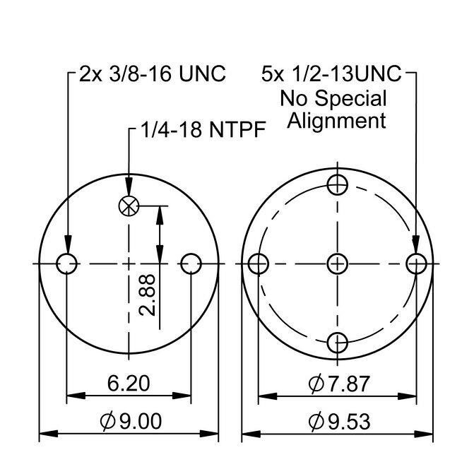 - 2x threaded hole5x threaded holerolling lobe9.45 in9.00 in7.50 in9 10-14016008001
