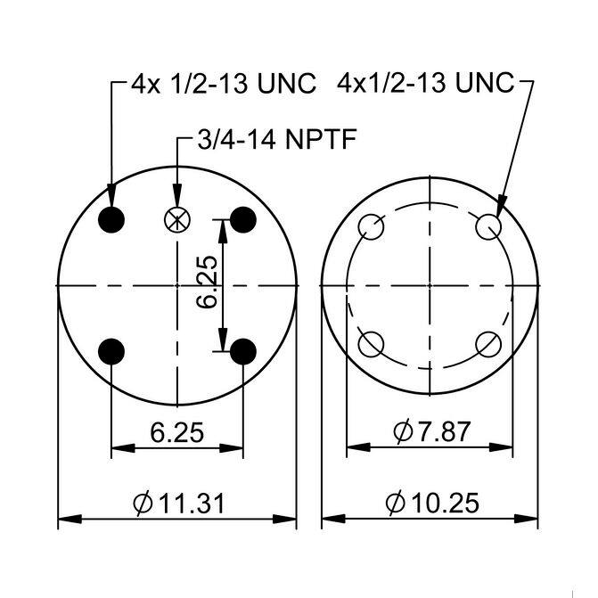 - rolling lobe4x stud4x threaded hole11.31 in10.25 in8.58 in11 10.5-21