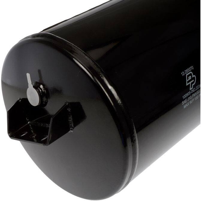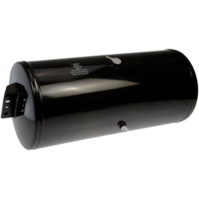 This air brake air tank matches the fit and function of an original tank that is damaged or due for replacement. It is designed to help securely store compressed air for the braking system on specified vehicles.