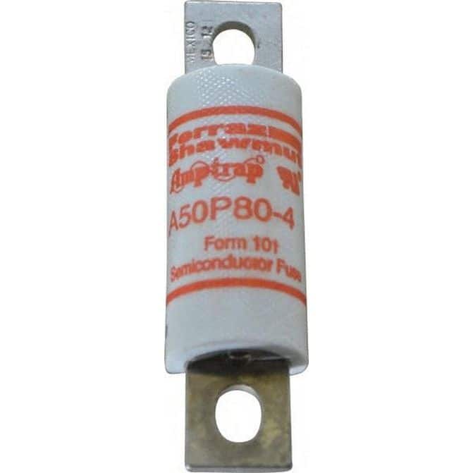 • Manufacturer Part Number: A50P80-4|Fuse Type|Fuse Class|Amperage|80.00AVoltage|Fuse Timing|Fast-ActingFuse Body Type|BladeOverall Length (Decimal Inch)|Overall Length (Inch)|3-5/8inOverall Length (mm)|92.20mmOverall Diameter (Frac)|1Overall Diameter (Mm - 4 Decimals)|25.40mmOverall Diameter (Decimal Inch - 4 Decimals)|Material|GMGMount Type|Bolt-OnColor|Number Of Elements|Rejection Setting|Interrupting Rating (A)|Interrupting Rating (kA)|Minimum Operating Temperature (F)|Maximum Operating Temperature (F)|Indicating Information|Standards|UL Guide JFHR2; UL Recognized Component File 60314Reusability|Product Service Code|UNSPSC Code|39121605
