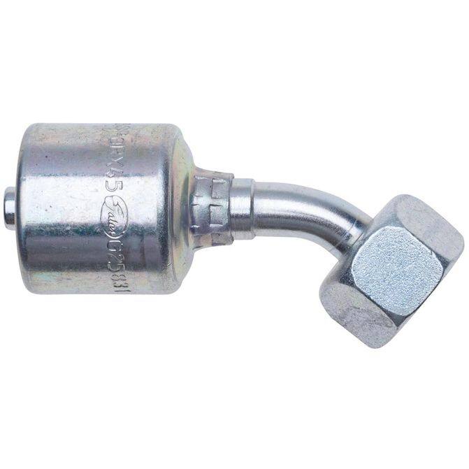 Female British Standard Parallel Pipe O-Ring Swivel - 45 Bent Tube (MegaCrimp)