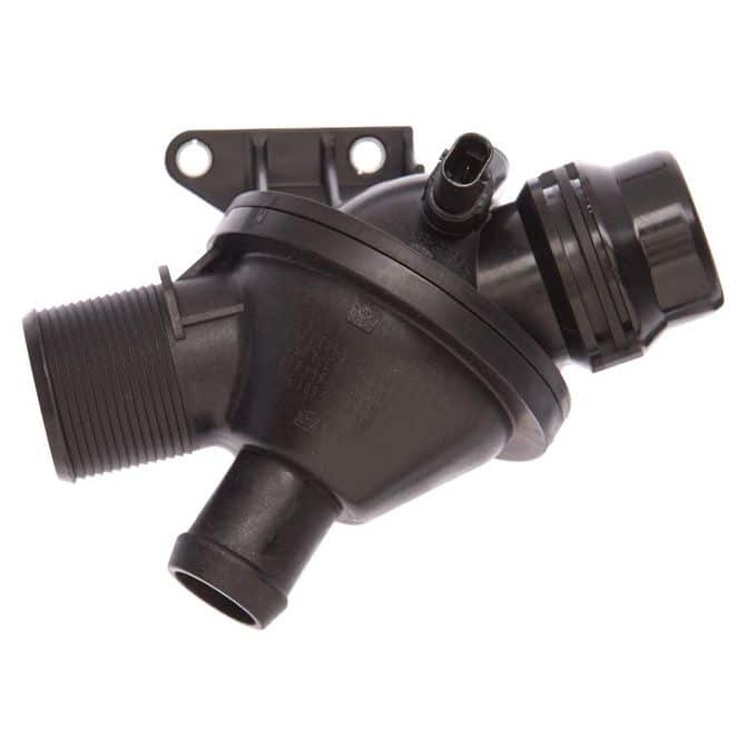 • The thermostat water outlet assembly is the latest in thermostat design. It integrates design elements of both a thermostat and a water outlet. This allows for a simplified design since parts of the water outlet function as the thermostat flange. This