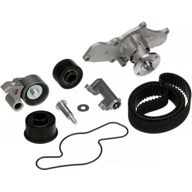 • Gates Timing Belt Component Kits with Water Pump offer customers the best and most complete repair solution by including the same OE components as our TCKs - timing belts, pulleys and tensioners as well as a water pump. Timing belt driven water pumps s