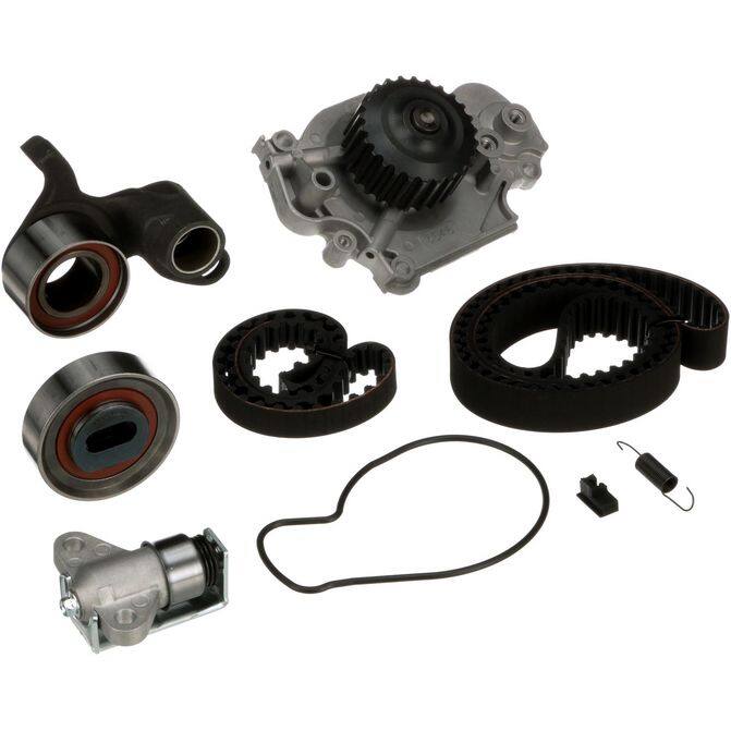 • Gates Timing Belt Component Kits with Water Pump offer customers the best and most complete repair solution by including the same OE components as our TCKs - timing belts, pulleys and tensioners as well as a water pump. Timing belt driven water pumps s