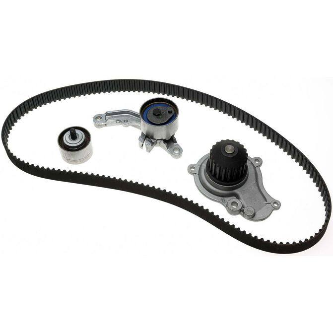 • Gates Timing Belt Component Kits with Water Pump offer customers the best and most complete repair solution by including the same OE components as our TCKs - timing belts, pulleys and tensioners as well as a water pump. Timing belt driven water pumps s