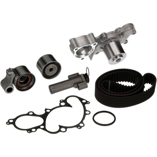 • Gates Timing Belt Component Kits with Water Pump offer customers the best and most complete repair solution by including the same OE components as our TCKs - timing belts, pulleys and tensioners as well as a water pump. Timing belt driven water pumps s