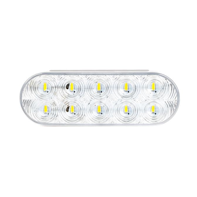 Ensuring you are Ready for the Road Ahead™, the HD Value 6” Oval 10-LED Back-Up Light supplies the proper DOT standard safety lighting for your semi truck. This light boasts light weight and compact surface-mount technology (SMT) mounted LED chips on printed circuit boards (PCB). Keep yourself and other drivers safe while your rig is in reverse, with superior light transmission. In addition, gain protection from lamp corrosion with a weather resistant IP67 rated housing. This long-lasting LED utility license lamp provides excellent energy efficiency that does not drain vehicle power. FleetPride is your First Click in Heavy Duty®. - Rated for operation in temperatures ranging from -40 °F to 145 °F