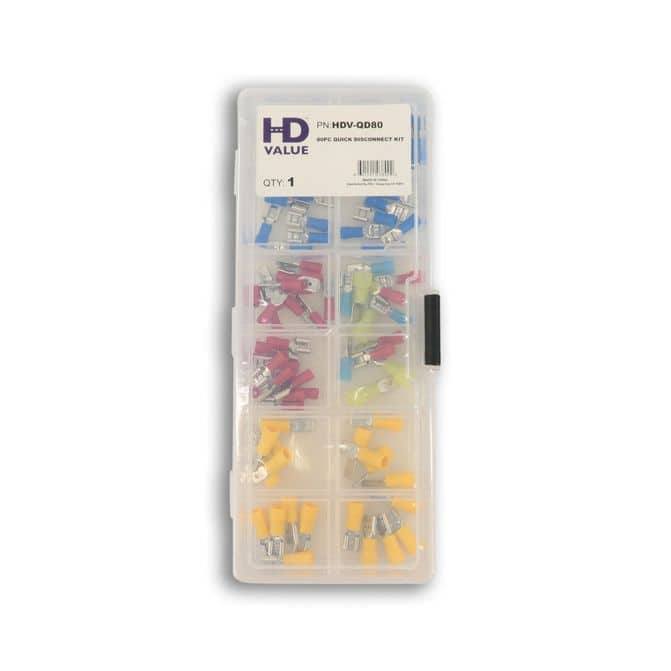 The HD Value 80 Piece Quick Terminal Disconnect Kit is perfect for various electrical repair tasks. This comprehensive kit includes everything you need to do the job quickly and efficiently. The kit consists of high-quality tools made from durable materials designed to provide reliable performance and be easy to use. This kit lets you easily and quickly disconnect terminals, splice wires and more. Whether you're a professional electrician or a DIY enthusiast, this kit will be helpful.