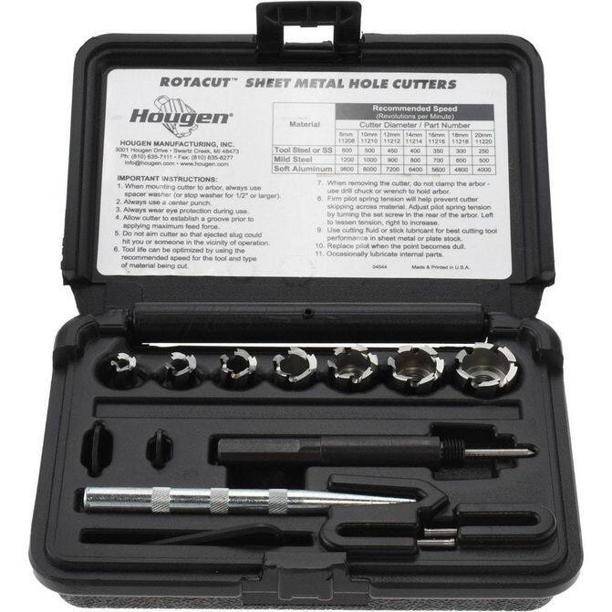 Manufacturer Part Number: 11077|Minimum Cutter Diameter (Inch)|Minimum Cutter Diameter (Fractional Inch)|Minimum Cutter Diameter|8mmMaximum Cutter Diameter (Inch)|Maximum Cutter Diameter (Fractional Inch)|Maximum Cutter Diameter|20mmShank Type|Thread MountCutter Diameter|10 mm; 12 mm; 14 mm; 16 mm; 18 mm; 20 mm; 8 mmTool Material|High-Speed SteelCoated|Coating|Bright/UncoatedSeries|Shank Diameter (Fractional Inch)|Shank Diameter|Tool Application|Tool Performance|Flatted|Includes|(7) Annular Cutters;3/8" Arbor Assembly;Center Punch;PilotStorage Unit Height|Storage Unit Length|Storage Unit Width|Primary Workpiece Material|Primary Workpiece Material Code|Secondary Workpiece Material|Secondary Workpiece Material Code|Depth Of Cut|Number Of Flats|Number Of Pieces|10.0UNSPSC Code|23241600