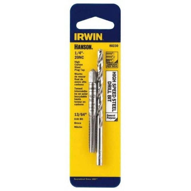 Manufacturer Part Number: 80230|Minimum Tap Thread Size (Inch)|1/4-20Minimum Tap Thread Size (mm)|Maximum Tap Thread Size (Inch)|1/4-20Maximum Tap Thread Size (mm)|Maximum Drill Size (Letter)|Maximum Drill Size (Wire)|Maximum Drill Size (mm)|Maximum Drill Size (Fractional Inch)|13/64Minimum Drill Size (mm)|Minimum Drill Size (Letter)|Minimum Drill Size (Wire)|Minimum Drill Size (Fractional Inch)|13/64Tap Type|Spiral FluteTap Coating/Finish|BrightTap Material|Carbon SteelDrill Material|High Speed SteelChamfer|PlugTap Thread Sizes Included|1/4-20Number Of Drills|Drill Sizes Included|13/64 inNumber Of Taps|Drill Point Angle|Case Type|Includes|Number Of Pieces|2Thread Direction|Product Service Code|UNSPSC Code|23241600