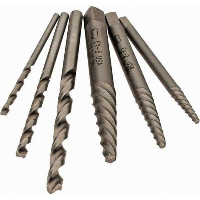 Manufacturer Part Number: 53700|Tool Type|Spiral Flute Screw ExtractorCompatible Screw Size|3/16 in; 7/32 in; 1/4 in; 9/32 in; 5/16 in; 11/32 in; 3/8 in; 13/32 in; 7/16 inScrew Type|Drive Size|Container Type|Material|Overall Length (mm)|Overall Length (Decimal Inch)|Overall Length (Inch)|For Use With|Includes|(3) HSS Drill Bit Extractors: 5/64 in, 7/64 in & 5/32 in; (3) Spiral Screw Extractors: EX1, EX2 & EX3Metric Size|Additional Information|HSS DrillMeasurement Type|Screw Size Range (Inch)|3/16 to 7/16Screw Size Range (mm)|Maximum Capacity (Inch)|Drill Sizes (Inch)|5/64;7/64;5/32Extractor Size|#1; #2; #3Size Range|3/16 in - 7/16 inPipe Sizes|Minimum Capacity (Fract. Inch)|Number Of Pieces|6Width (Decimal Inch - 4 Decimals)|Hex Size (Inch - 0 Decimals)|UNSPSC Code|27110000