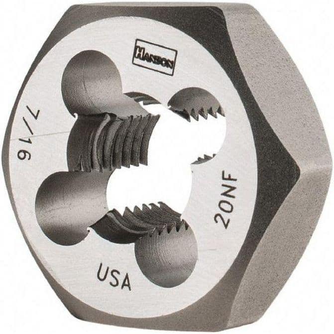 Hex Rethreading Die: 7/16-20, Right Hand, 1" Hex, Carbon Steel